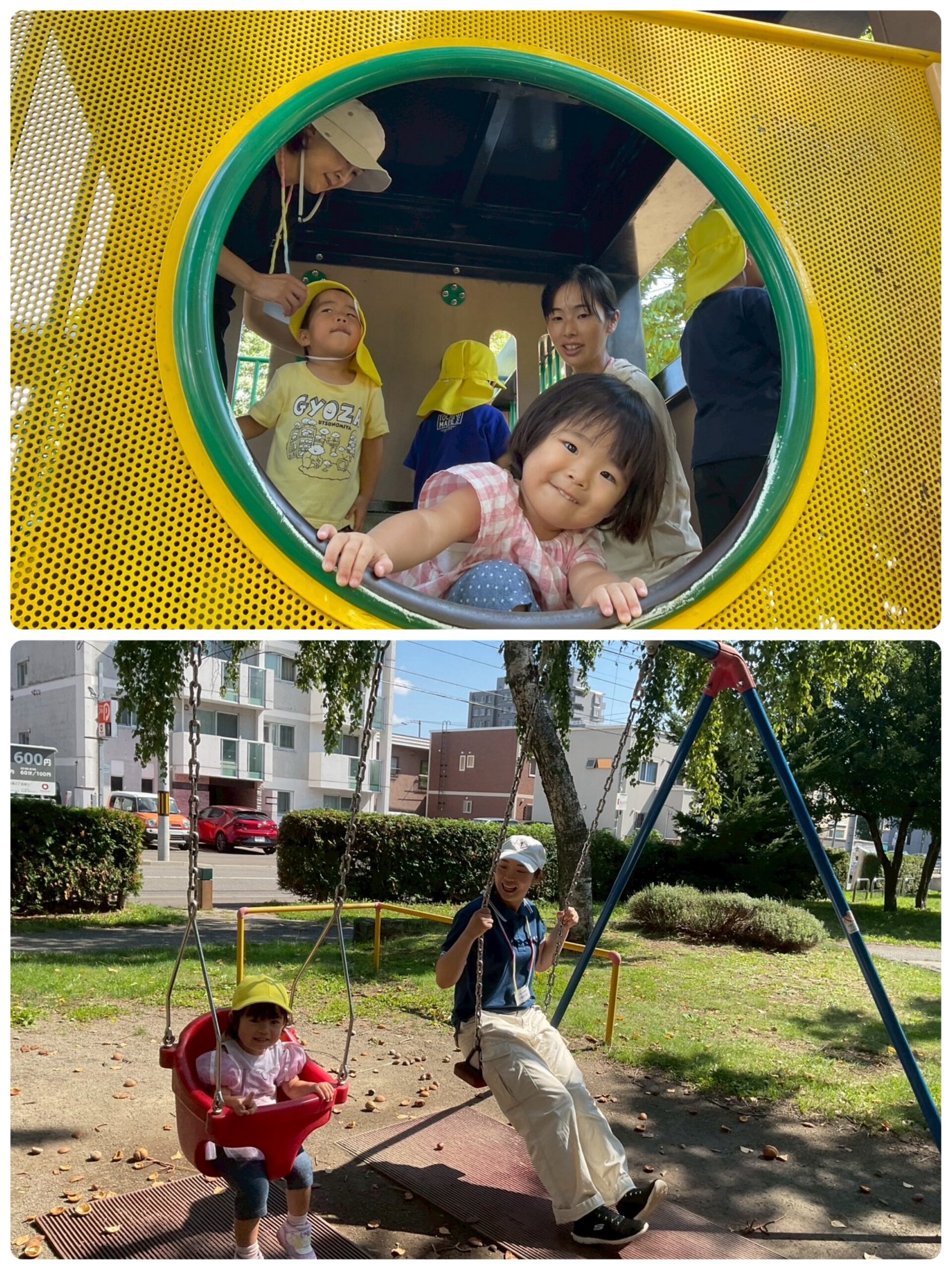 難しいブランコをしたり、お父さん・お母さんの力を借りてボルダ