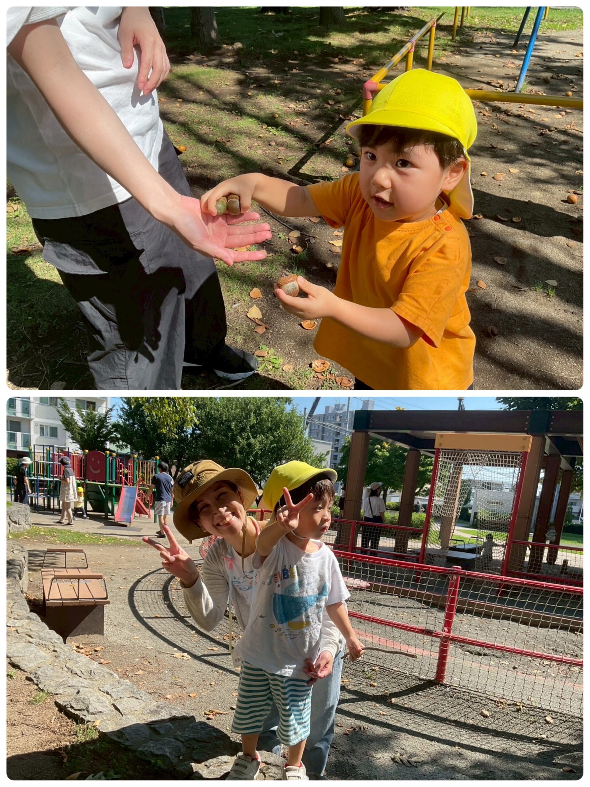 落ちているとちの実や姫りんごを拾ったり、普段は中々遊ぶのが