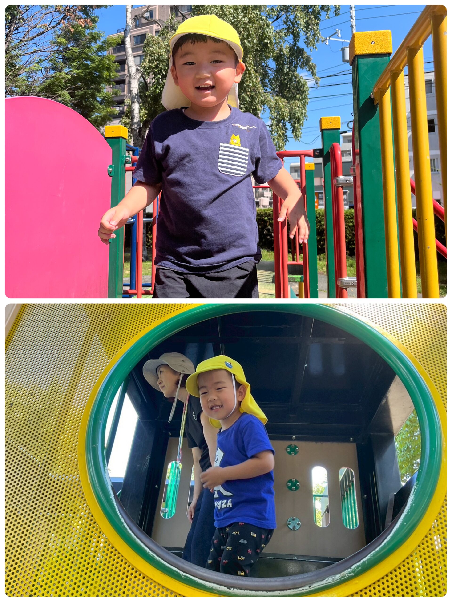 手で顔をしっかりと隠して上手に隠れるお友達もいて、個性溢れる