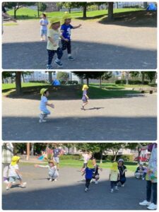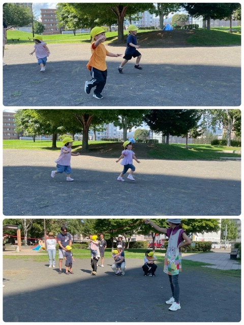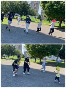 公園へ到着し、ジュースで水分補給をしてから、皆でレクリエー